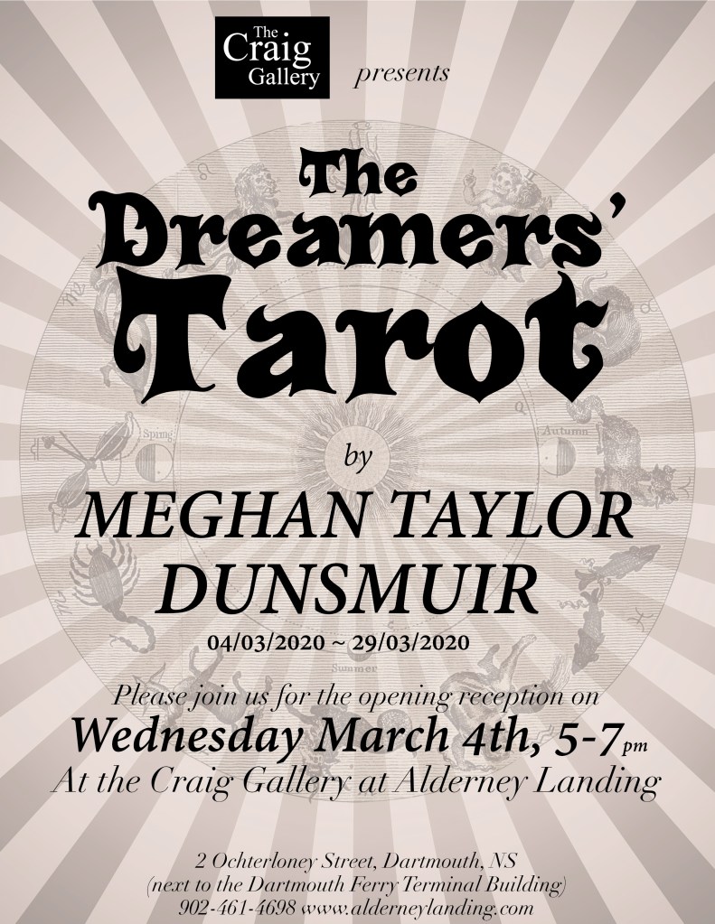 The Dreamers’ Tarot is an art installation featuring twelve textile tarot cards that will be on display at The Craig Gallery in Dartmouth, NS between March 4th-March 29th, 2020.